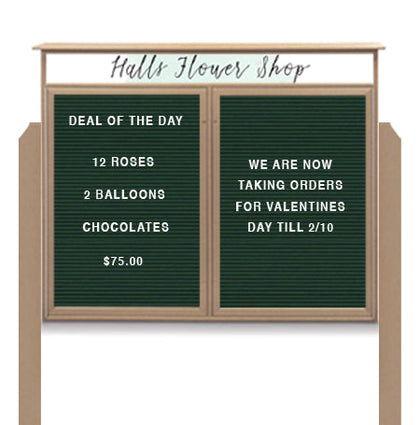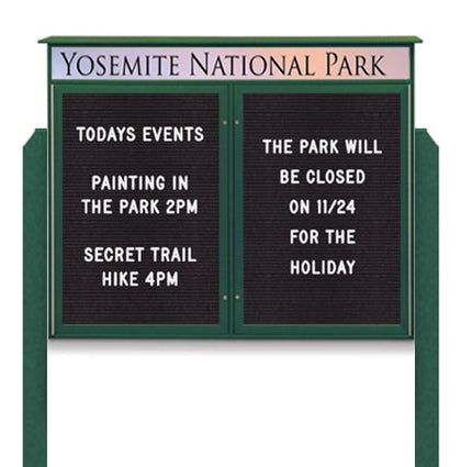 Trust the Promotion and Protection of your Schedules, Events, Daily Specials, Show Times, Announcements & other Messages to our Double Door, Outdoor Letter Board Message Centers. Offered in both Free Standing Letter Board & Wall Mounted Message Board styles, our Changeable Letter Board Signs include a wide and versatile variety of notice board features, making them the perfect choice for many outdoor locations.