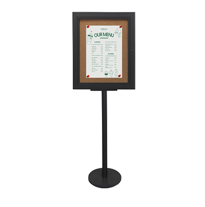 Two 8 ft. metal aluminum posts bolted to the sides of the display case firmly root the weather resistant bulletin board 3 ft into the ground and securing the outdoor display case while it displays your printed materials.
