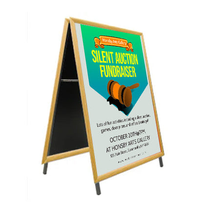 Portable, Foldable Wood A-Frame 17x23 Sign Holder | 1 1/4" Wide Snap Frame Profile in 3 Finishes