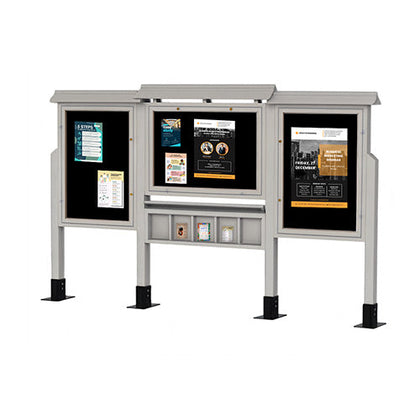 3-IN-ROW Kiosk ECO-Design Outdoor Freestanding Information Message Boards with Literature Rack