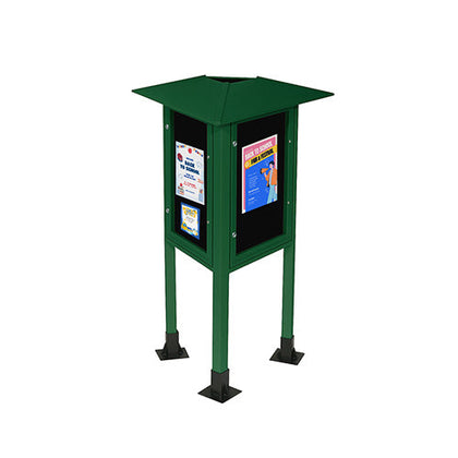 Maintenance-free and Eco-friendly Recycled Plastic Lumber (Polyethylene) Construction renders this outdoor information board impervious to Water, Chemicals, and Boring Insects. It will also never Rot, Crack, Split. or Decay. A protective slanted rooftop helps keep rain and debris from the message panel viewing area.